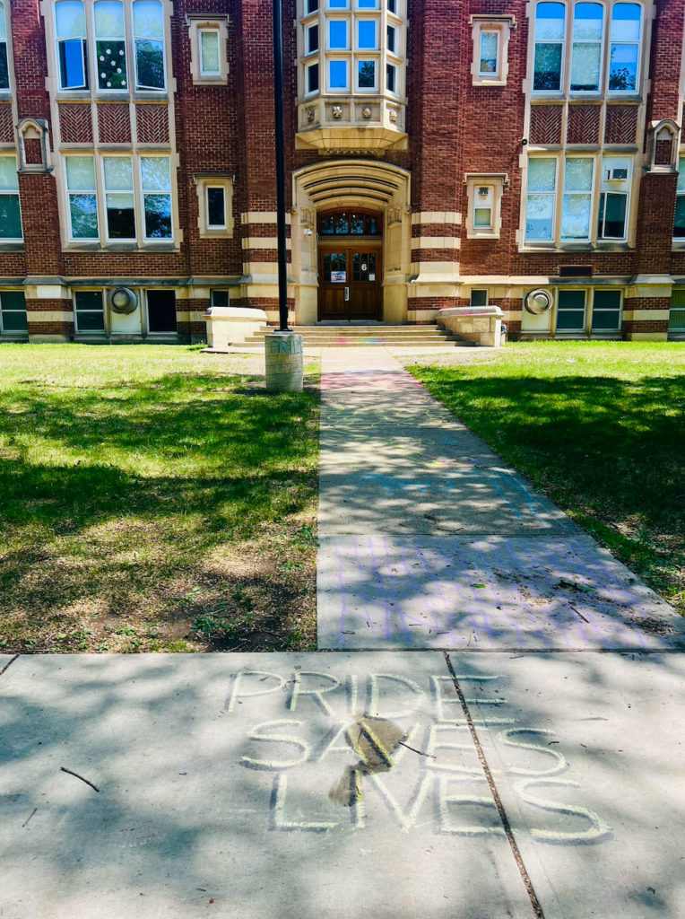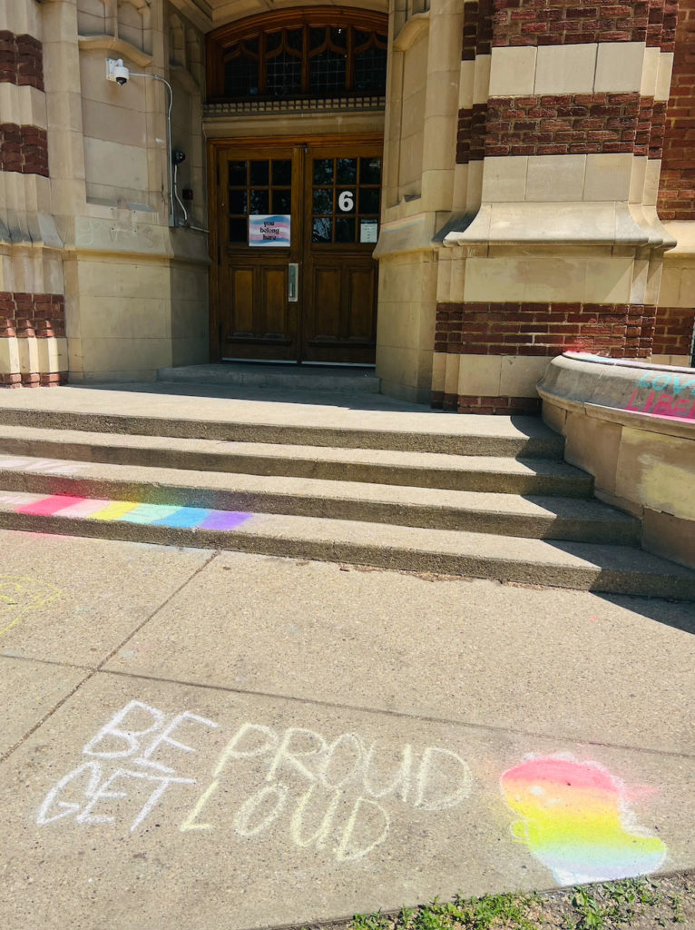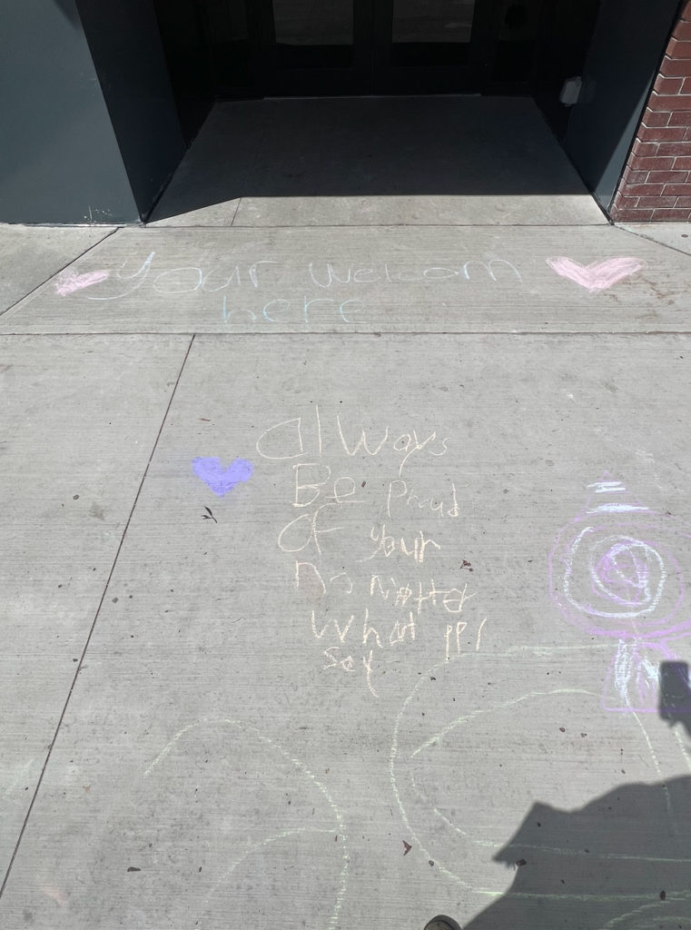 This year during Pride Week students wrote messages of kindness and acceptance on the sidewalks around the school, there was optional crafts available to all ages during a lunch hour, members of the AIA read inclusive books to many classrooms and on we celebrated Rainbow Day on Friday, June 6, inviting all students and staff to dress in rainbows or their favourite colour of the rainbow.